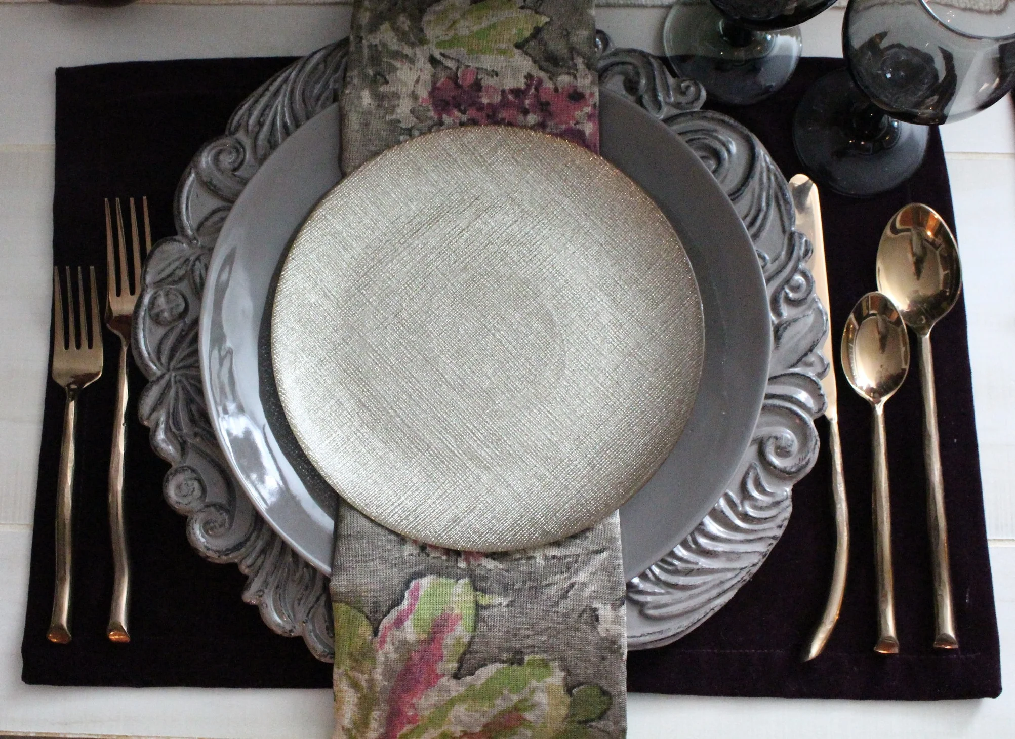 Lacquered grey chargers